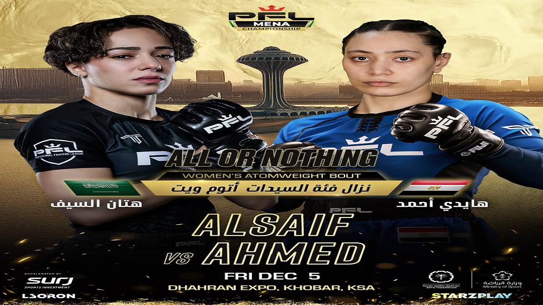 الرؤية المصرية:- الخبر ـ تستعد مدينة الخبر السعودية لاستضافة حدث تاريخي في عالم فنون القتال المختلطة يوم 5 ديسمبر المقبل، عندما تلتقي البطلة السعودية هتان السيف بالمقاتلة المصرية هايدي أحمد وجهاً لوجه في أول نزال احترافي لـ«السيف» ضمن نهائيات دوري المحترفين لمنطقة الشرق الأوسط وشمال إفريقيا (PFL MENA).