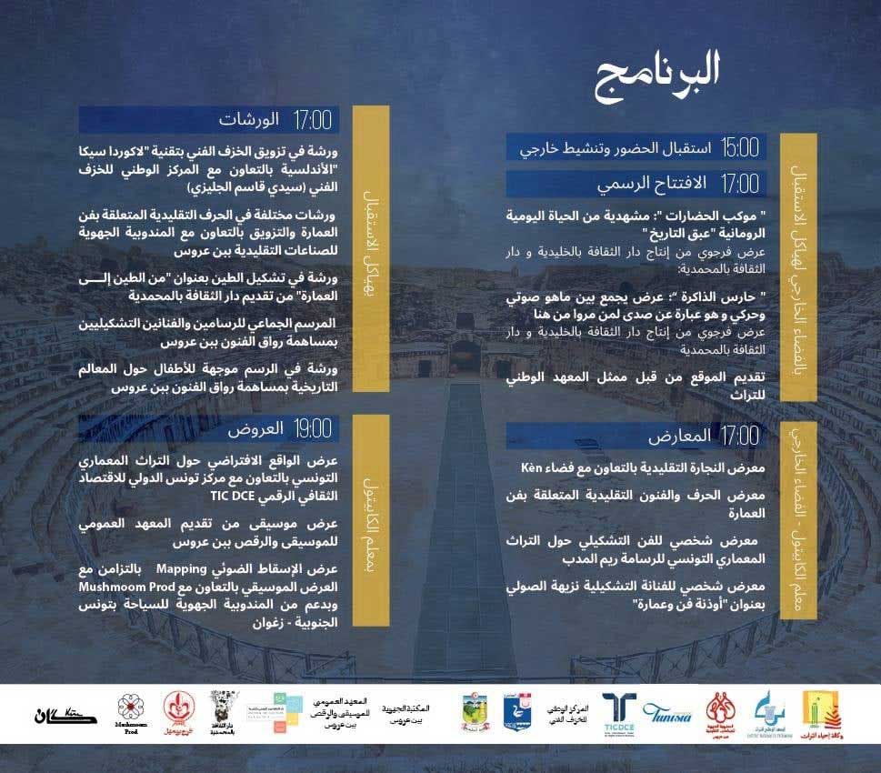 • المندوبية الجهوية للشؤون الثقافية بولاية بن عروس بالتعاون مع مؤسسات ثقافية وطنية وجهوية.